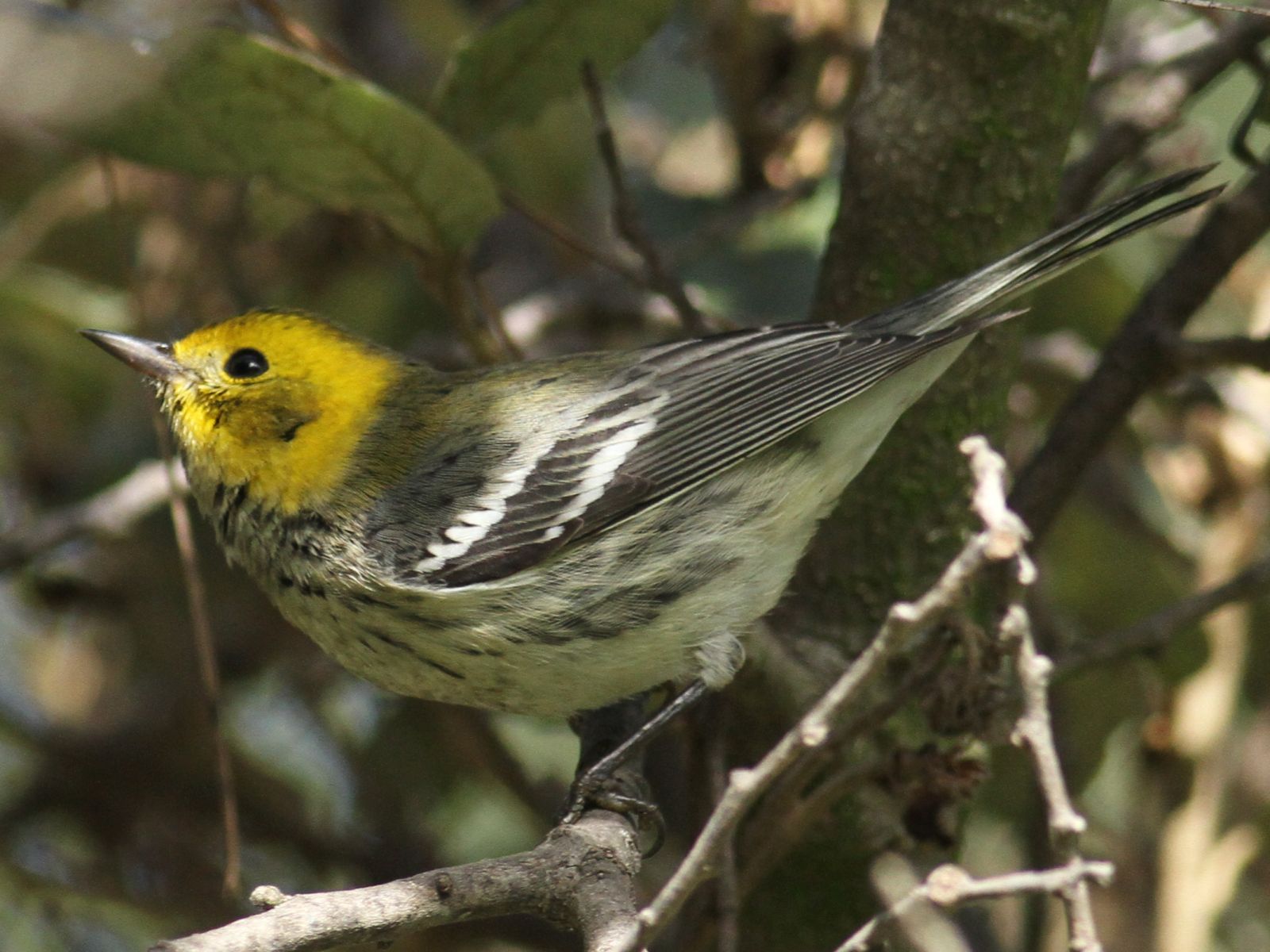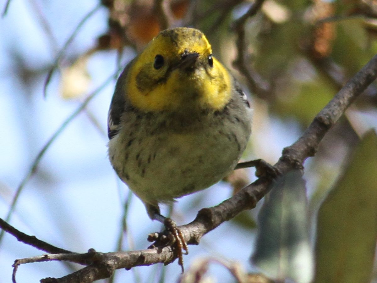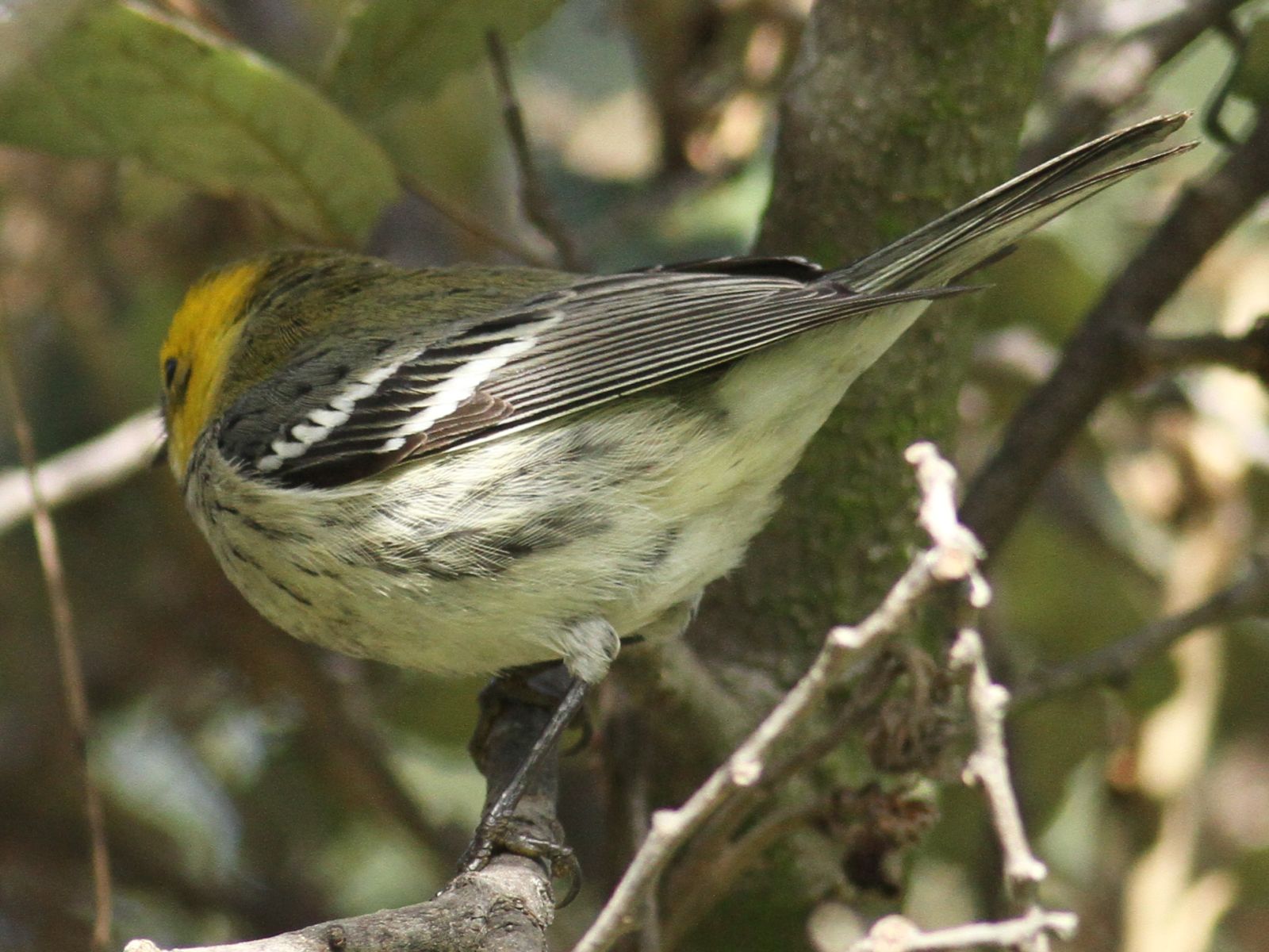 [All photographs copyright, Gary Nunn 2012] – The cool foggy morning kept the birds actively feeding and low in trees this morning at the Marston House in Balboa Park. This warbler put in an appearance in the tiny tree over the birdbath right outside the house and allowed some close photography. Reported yesterday as a Black-throated Green Warbler it appears to be a hybrid Hermit X Townsend’s Warbler of some degree. Looking most like a Hermit Warbler in fact, it may be a parental backcross of such a hybrid with Hermit Warbler. The quite strong streaked markings on the underparts and patchy dark auricular seems to indicate some Townsend’s Warbler mixed in to the parentage. Most importantly this bird has a clean white vent area, unlike Black-throated Green Warbler which shows off light yellow patches on the vent sides.