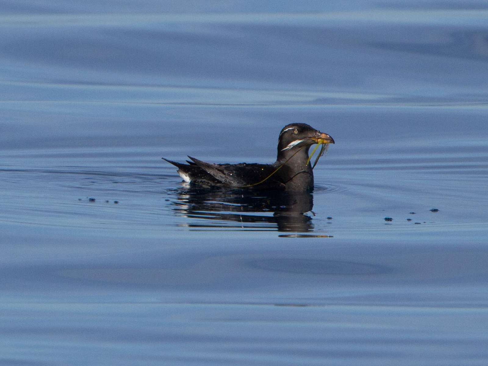 Rhinoceros Auklet carrying vegetation – offshore San Diego County, California 19 Jan 2014