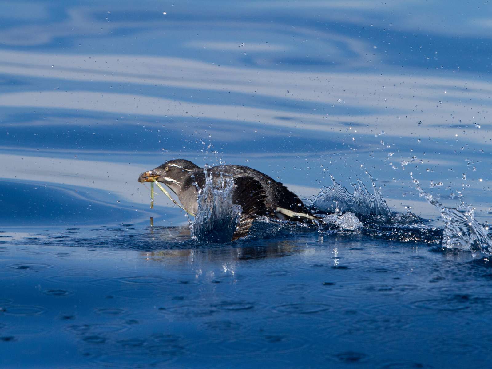 Rhinoceros Auklet carrying vegetation offshore San Diego