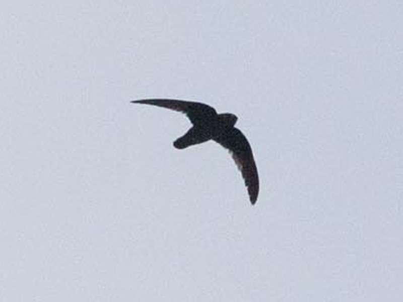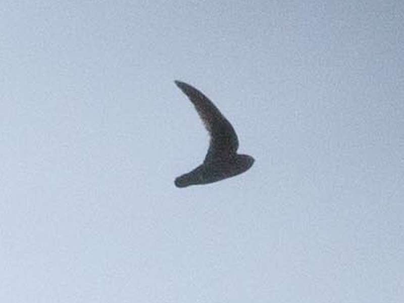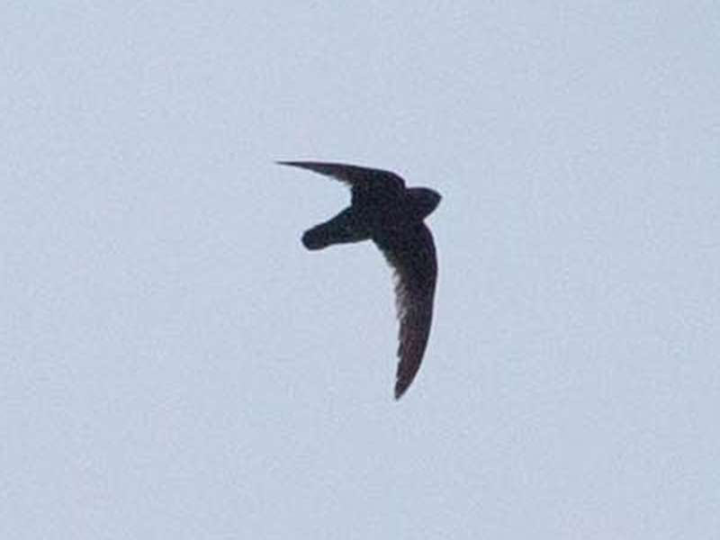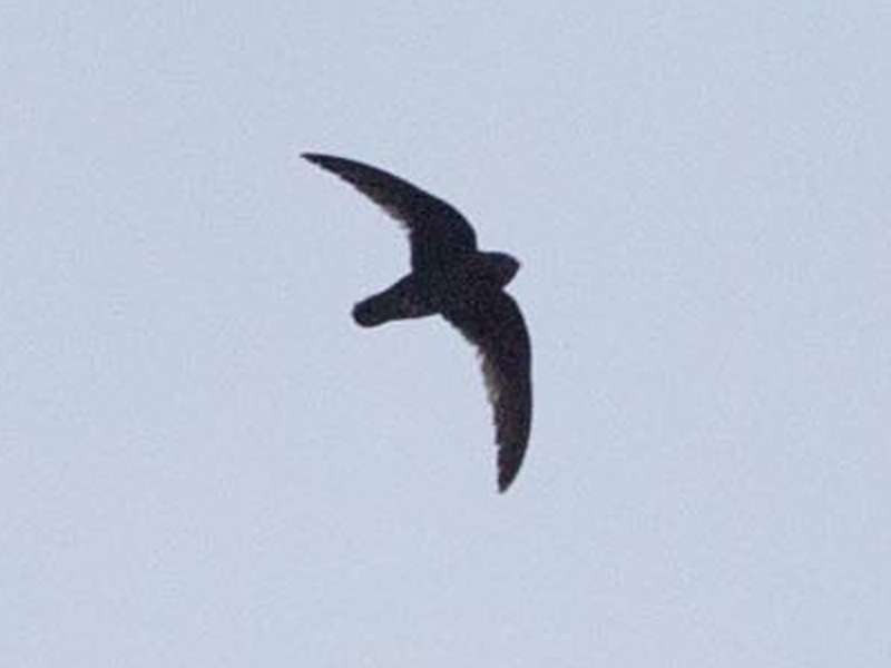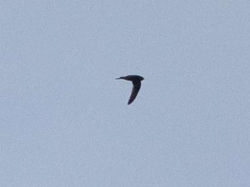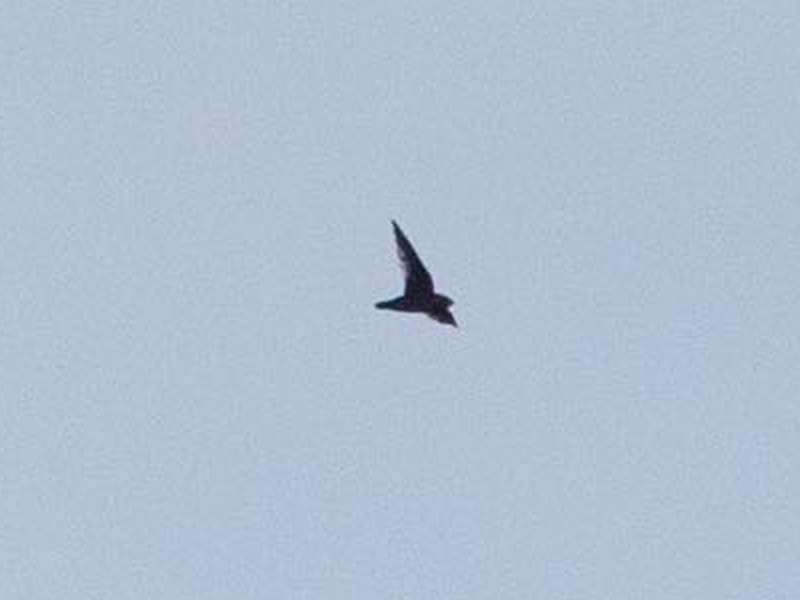This is a large bodied, long-winged swift by my standards and to my eye looks intermediate in appearance, and flight style, between a larger Eurasian type “needletail” and the slimmer profiled genus Apus. Scrutinizing the photographs very closely it is actually possible to see some lighter feathering about the eyes and bill, as well as a few white feathers around the lower belly. The wing feathers look quite worn and tattered which fits with this species pattern of molt on the wintering grounds. The San Diego County Bird Atlas (Unitt 2004) notes that Black Swift is decidedly less common here in the county on fall migration compared to spring migration. From 1997-2001 there was only one report in fall. Outside the atlas period the fall records of this species occur from 23 August to 24 October. Good locations to search include mountain tops in the county as well as Point Loma.