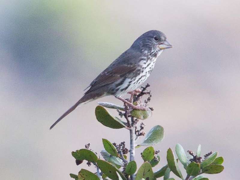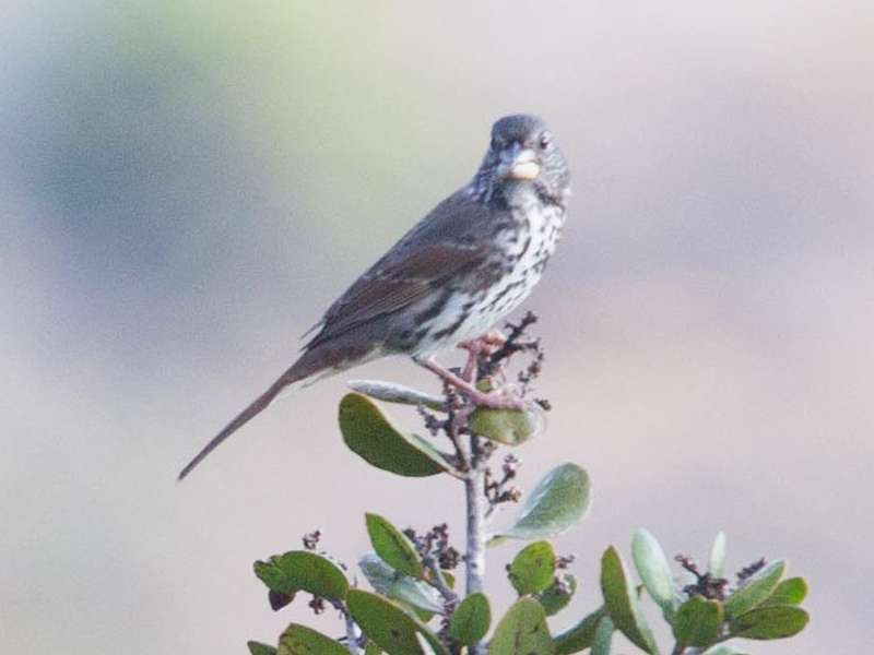 [All photographs copyright, Gary Nunn 2014] – I found a couple of “Thick-billed” Fox Sparrow Passerella [iliaca] megarhyncha at Fort Rosecrans National Cemetery today 26 September 2014. This one popped up and started singing in response to my pishing along the fence line! Rich rufous wings and tail and “grayish” head and back. The very large bill, particularly swollen looking at the base of the lower mandible, looks almost grosbeak-like.