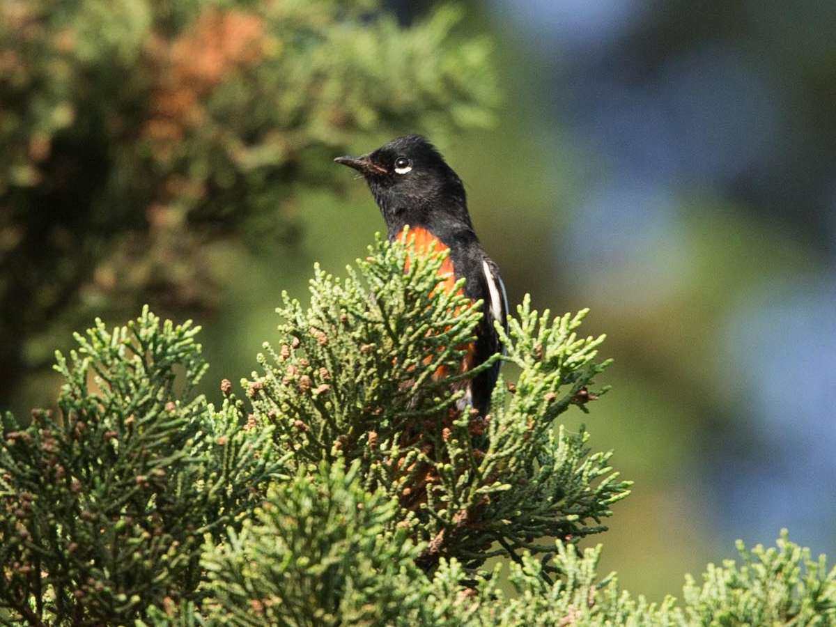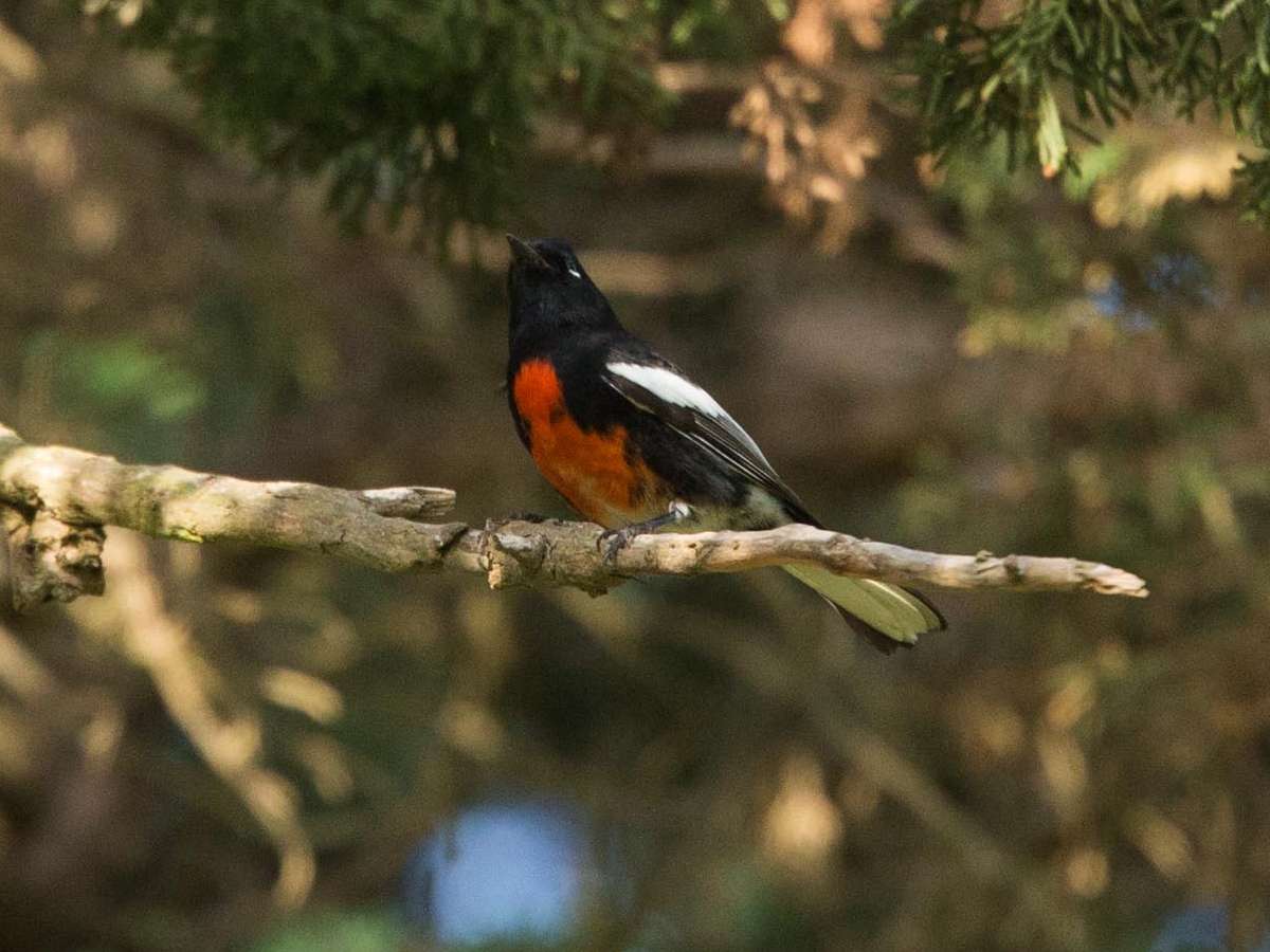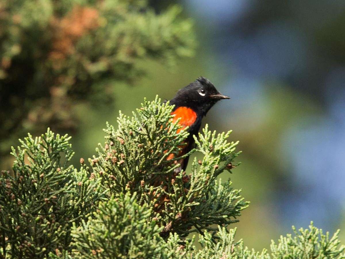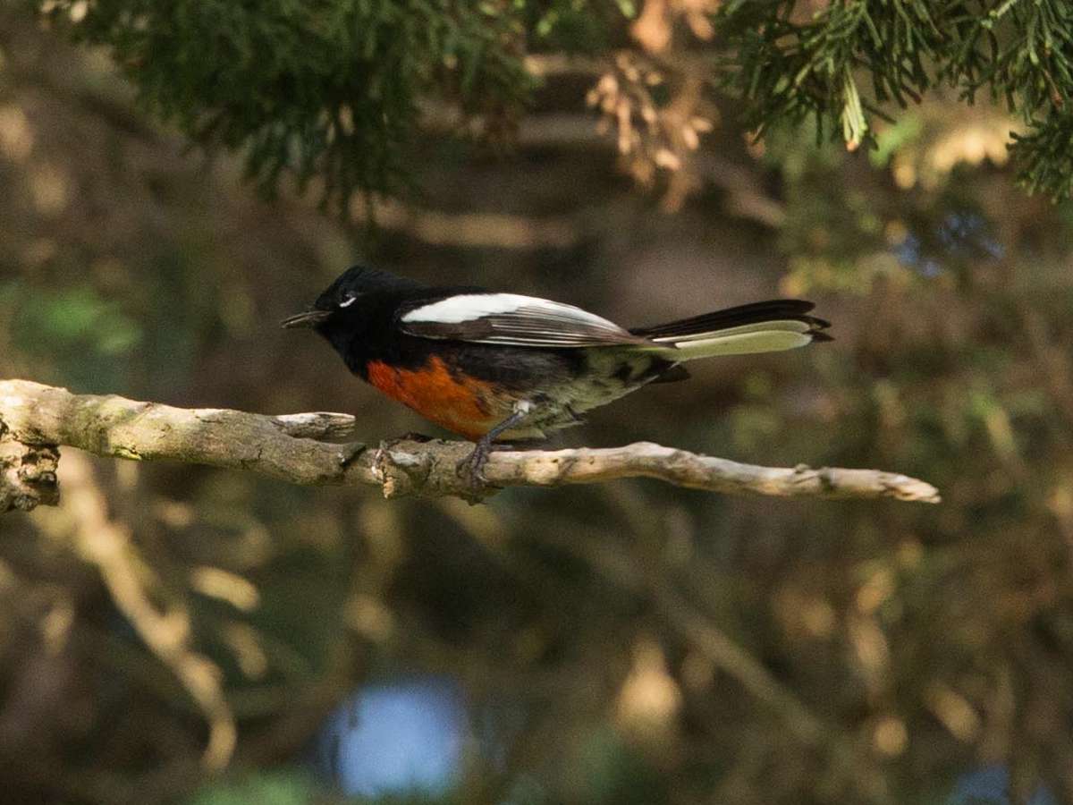 [All photographs copyright, Gary Nunn 2014] – I discovered this Painted Redstart Myioborus pictus at Fort Rosecrans National Cemetery on 11 Oct 2014 while trying to attract a couple of orioles out of a Ficus tree with a screech owl call. The redstart suddenly appeared flying in from behind me and was very agitated by the owl call. I went back to my car to fetch the big telephoto lens and by the time I returned it had disappeared. Unfortunately it was not relocated despite much searching!